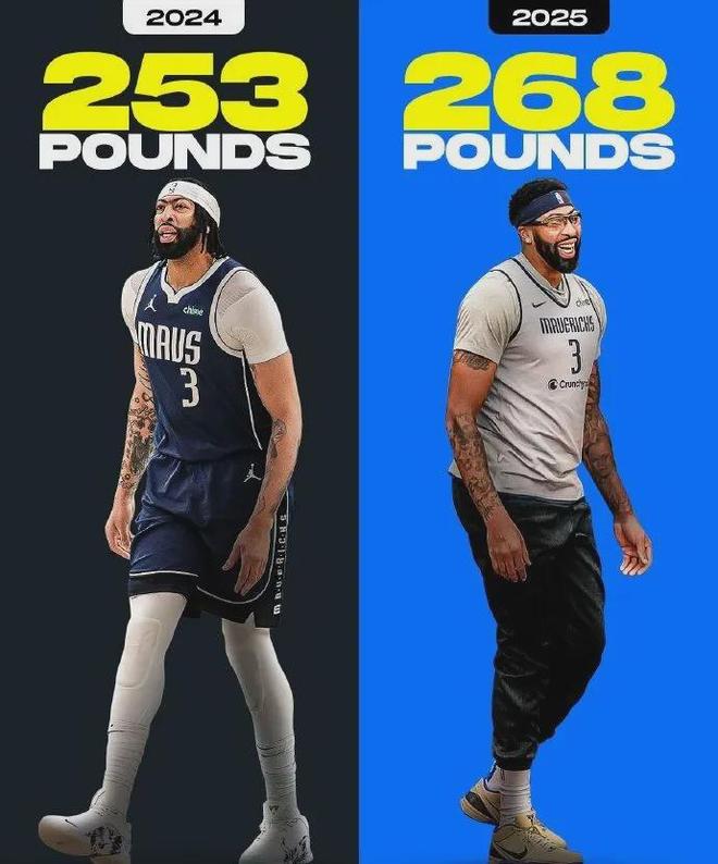 其实浓眉哥完全没必要增重让自己的玻璃属性更加严重,他在独行侠无需跟湖人时期那般长期打中锋,而是得大部分时间出任四号位搭配莱夫利或加福德,那需要的是轻盈状态以此能够扫荡场上各个位置,然而这哥们却反其道而行之......
