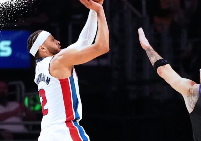 首节坎宁安晃倒了拉拉维亚命中三分,虽然过去两场比赛活塞都输球了可CC个人的状态没有任何问题,此役延续了出色的竞技状态,首节7中4拿到10分6助攻,他的串联对于活塞来说太重要了。
