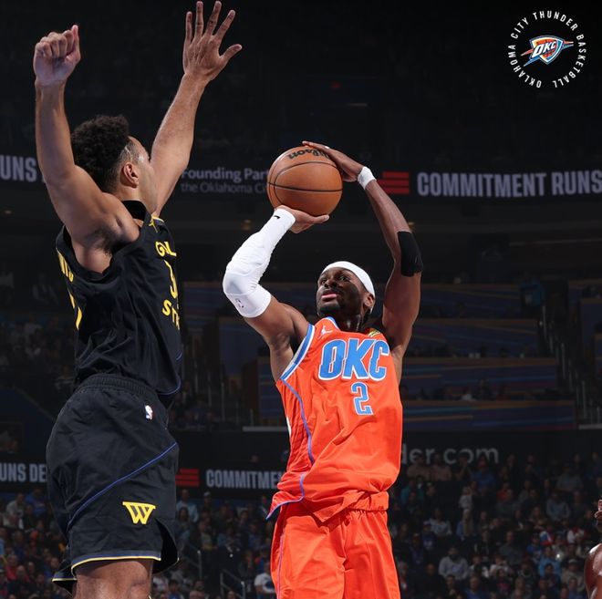 首节SGA7中3,拿到10分3助攻2篮板,还制造了库里一个2+1;上半场打完SGA15分6助攻3篮板,在亚历山大还没有尽全力时雷霆已经领先勇士19分之多了。