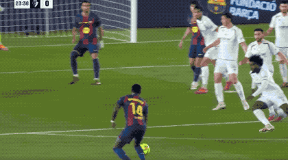 第14分钟,亚马尔原地摆脱送出妙传,费兰·托雷斯拍马赶到,第一时间射门,皮球稍稍高出。